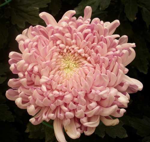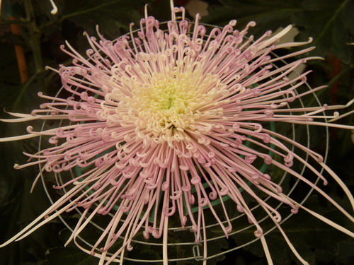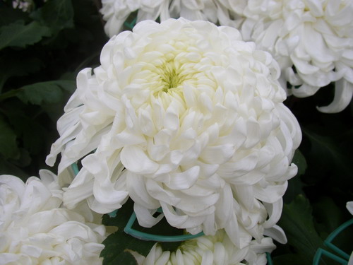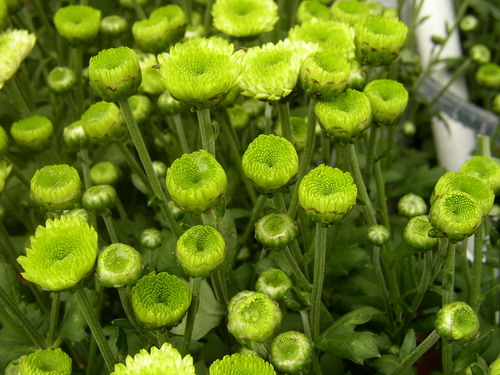外圍一圈白色花瓣接近花蕊是翠綠色的菊花