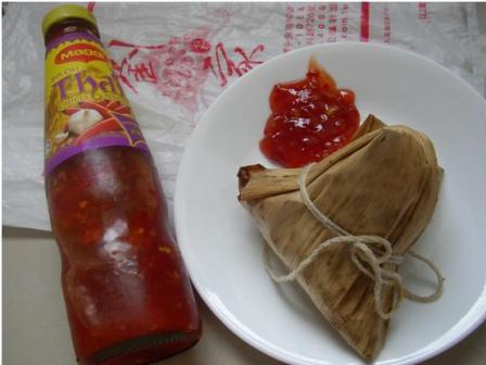 試了一口! 沒想到 顛覆了以往我對吃粽子 只沾醬油膏、辣椒醬 or 台式甜辣醬的吃法!