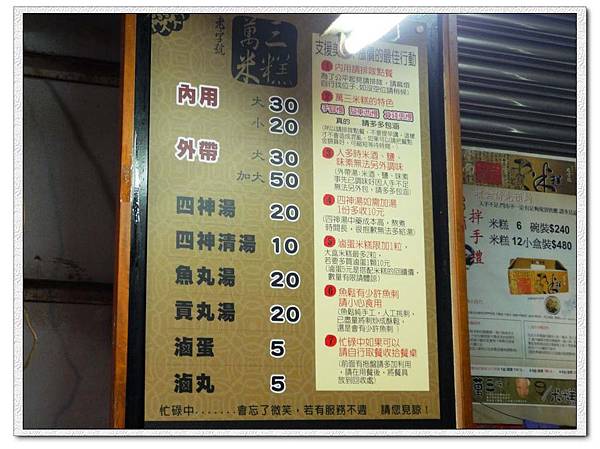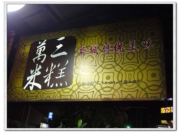 牆上掛著自我介紹「萬三米糕的特色」有慢三(台語)
