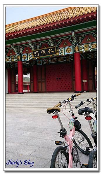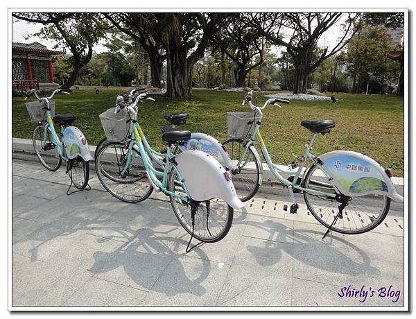 喜見與我們同時抵達孔廟的遊客騎乘著高雄公共自行車迎面而來