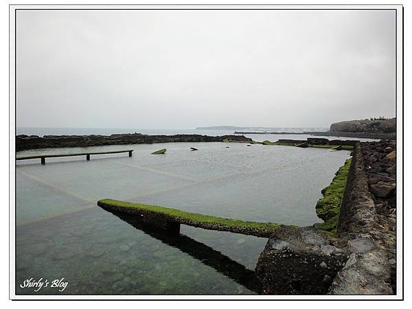 晨霧迷濛遠處港灣的景色,只見岸邊海水清澈見底