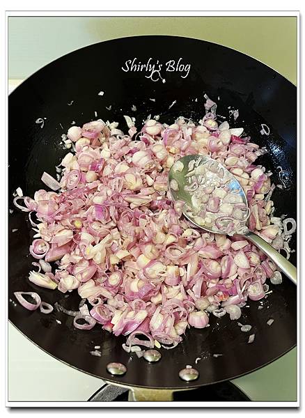 - 5.炒蝦米:蝦米需先洗淨瀝乾,利用炒紅蔥頭後原鍋剩餘的油脂炒香蝦米。