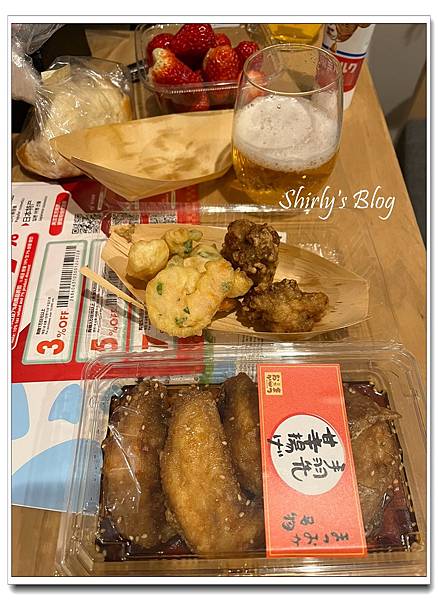 今天在名古屋駅逛街時貪心買的 えび天/鷄の唐揚げ/手羽先