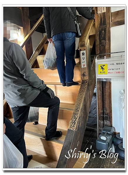 狹窄陡峭的木造樓梯真不符合人體工學比例,考驗著登高者的腿力,太辛苦了!